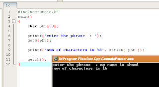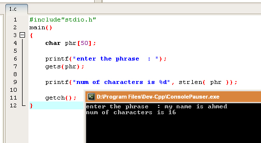 printf("num of characters is %d", strlen( phr ));